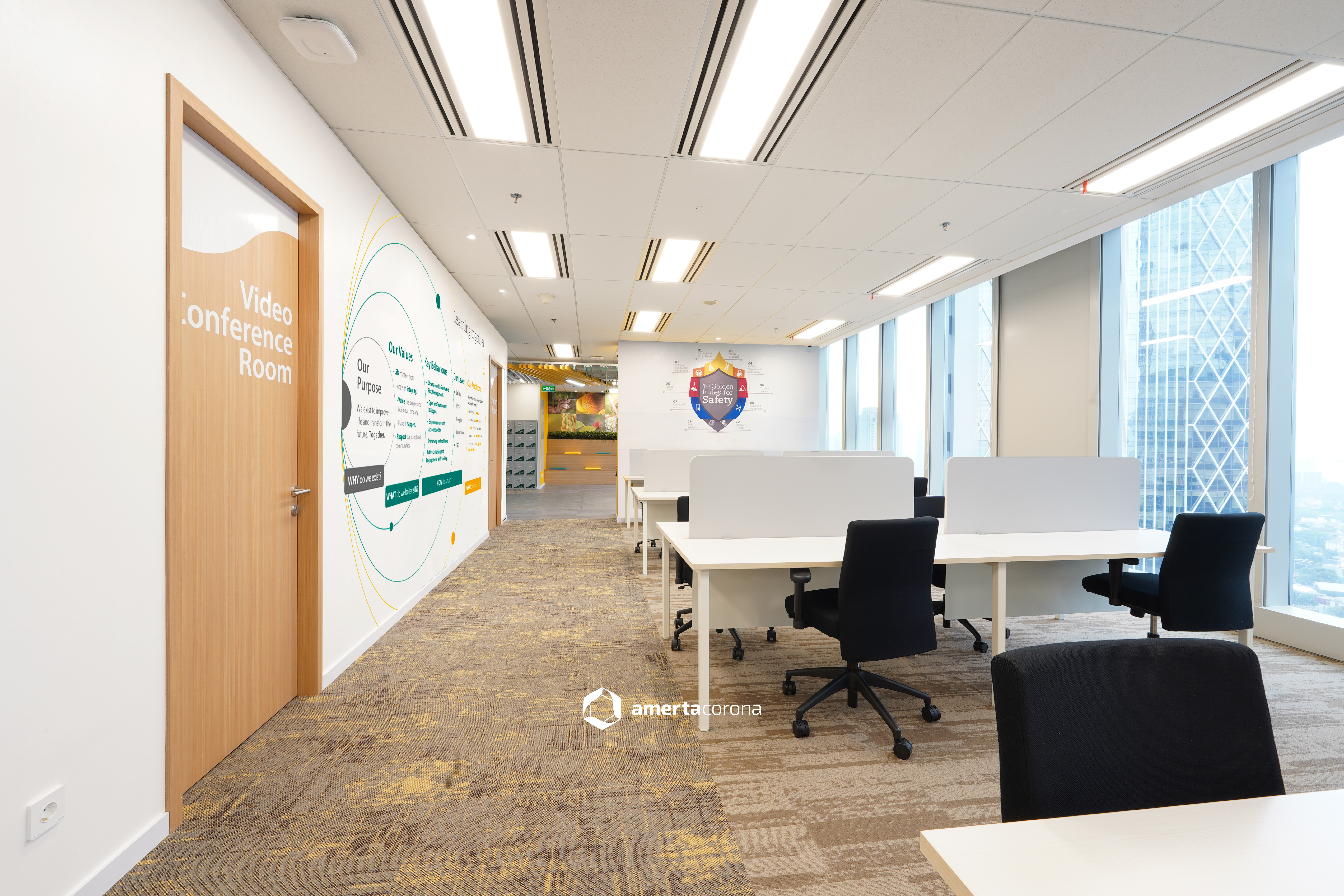 Welcome to the Vale Indonesia office, where modern interior design meets global brand consistency. Following Vale’s worldwide office guidelines, this workspace embodies the company’s commitment to innovation, sustainability, and collaboration. With a sleek, contemporary aesthetic, ergonomic layouts, and a seamless blend of functionality and brand identity, we have crafted an environment that reflects Vale’s global vision while catering to local needs. Explore how we brought Vale’s international standards to life in Indonesia.